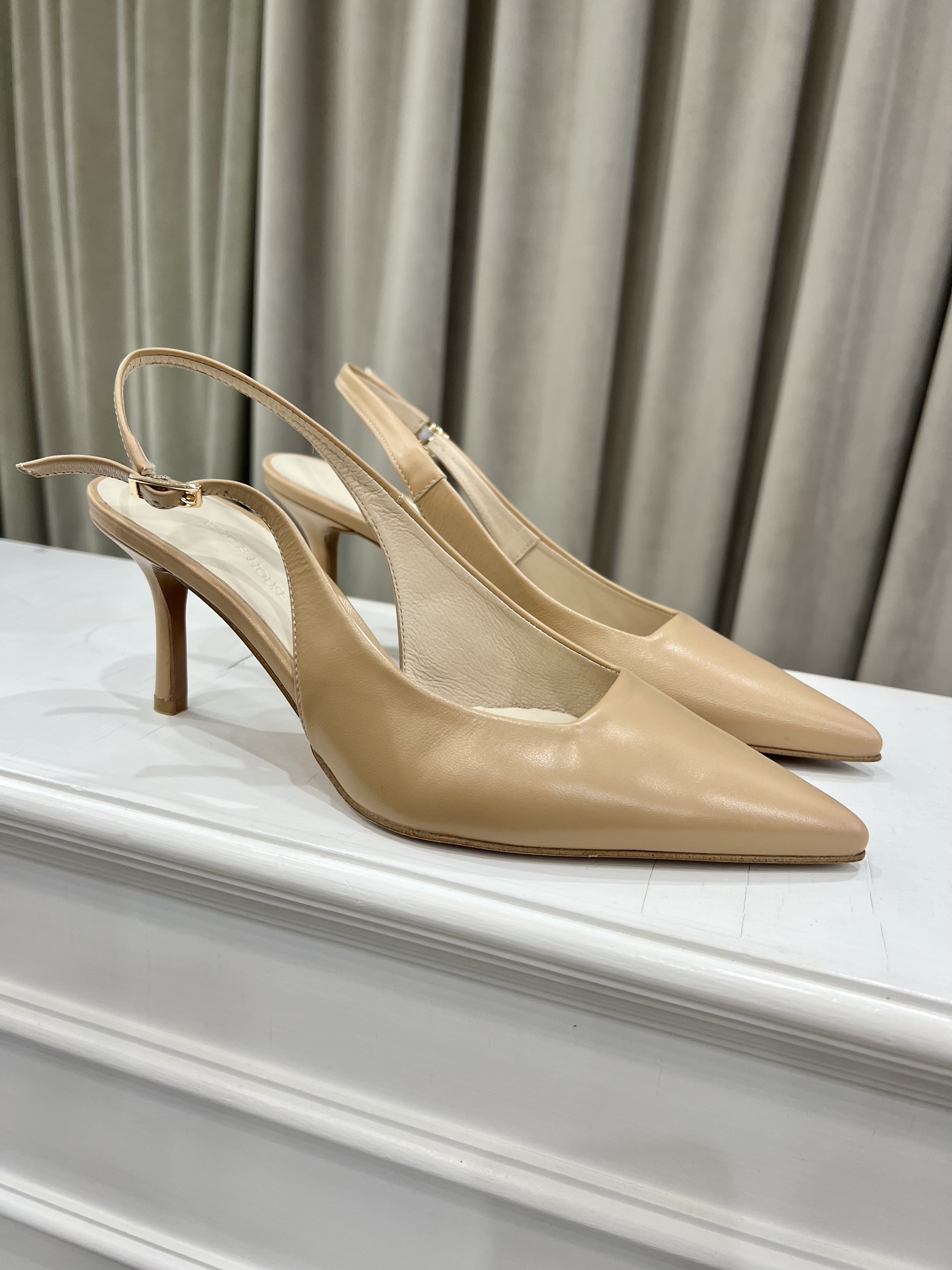 Skórzane czółenka bez pięty w cielistym kolorze.