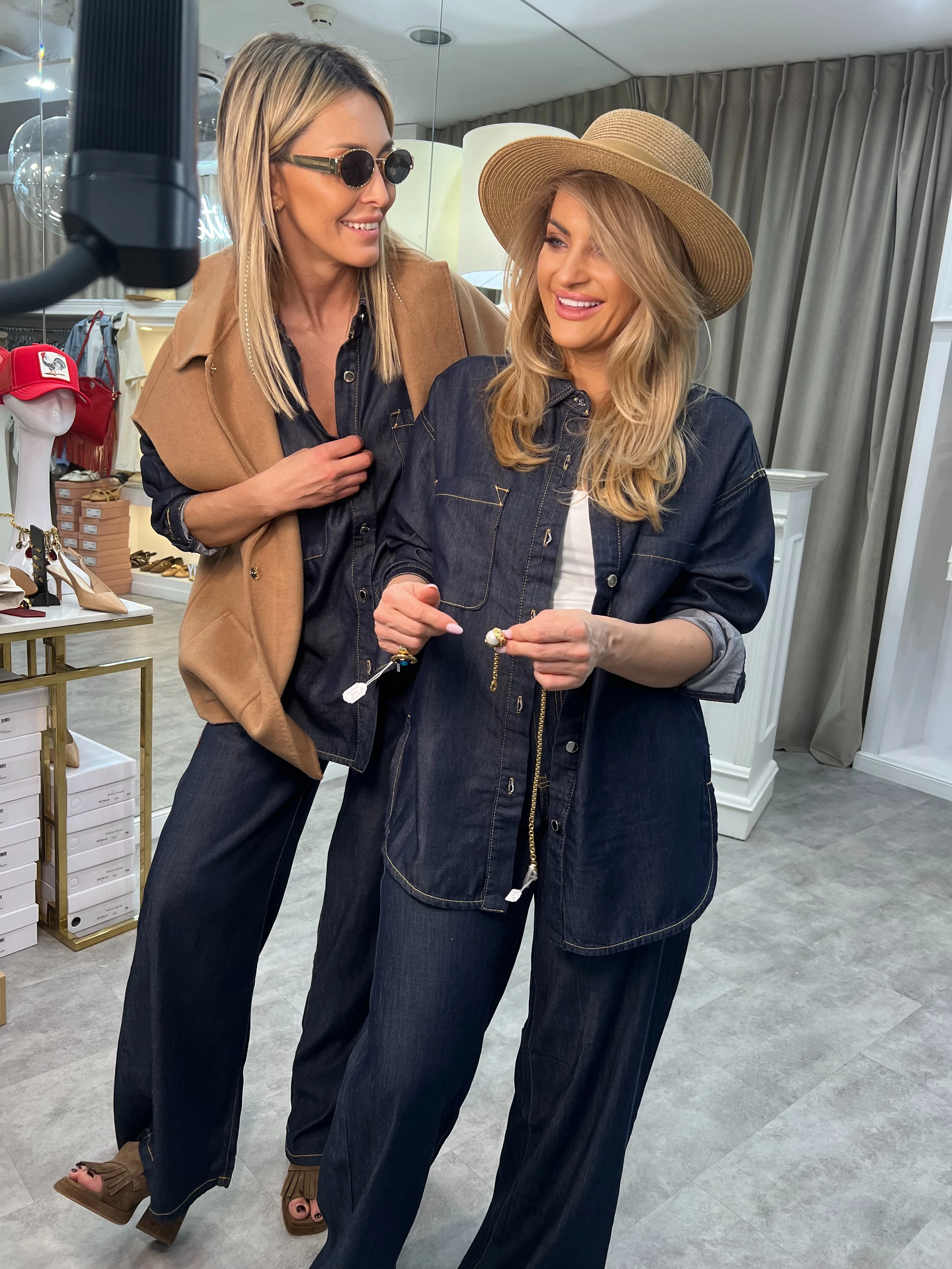 Koszula o luźnym kroju, zapinana na srebrne guziki.