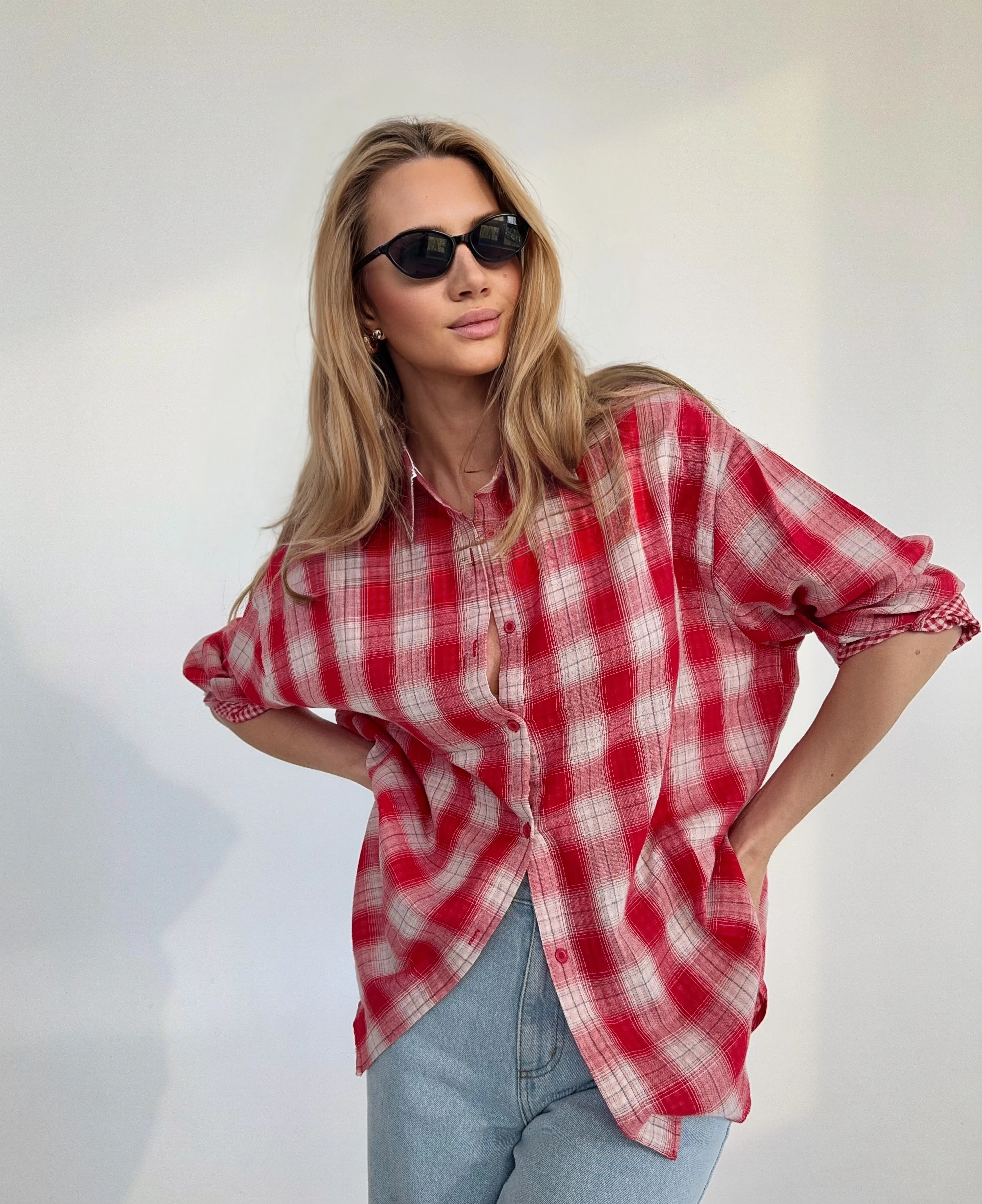 Koszulą oversize w kratę czerwoną. Rozmiar uniwersalny.